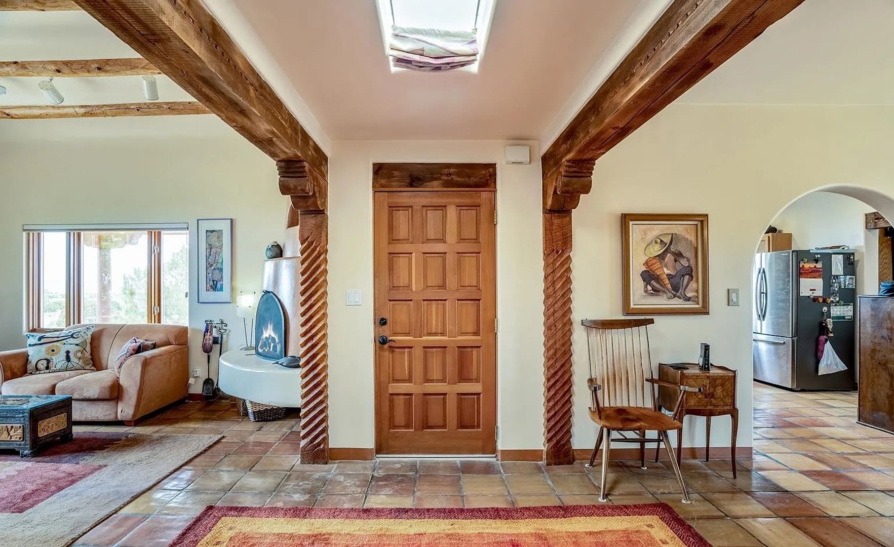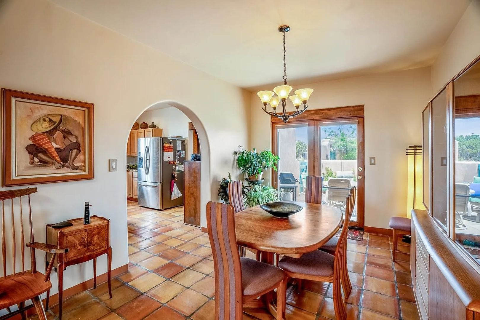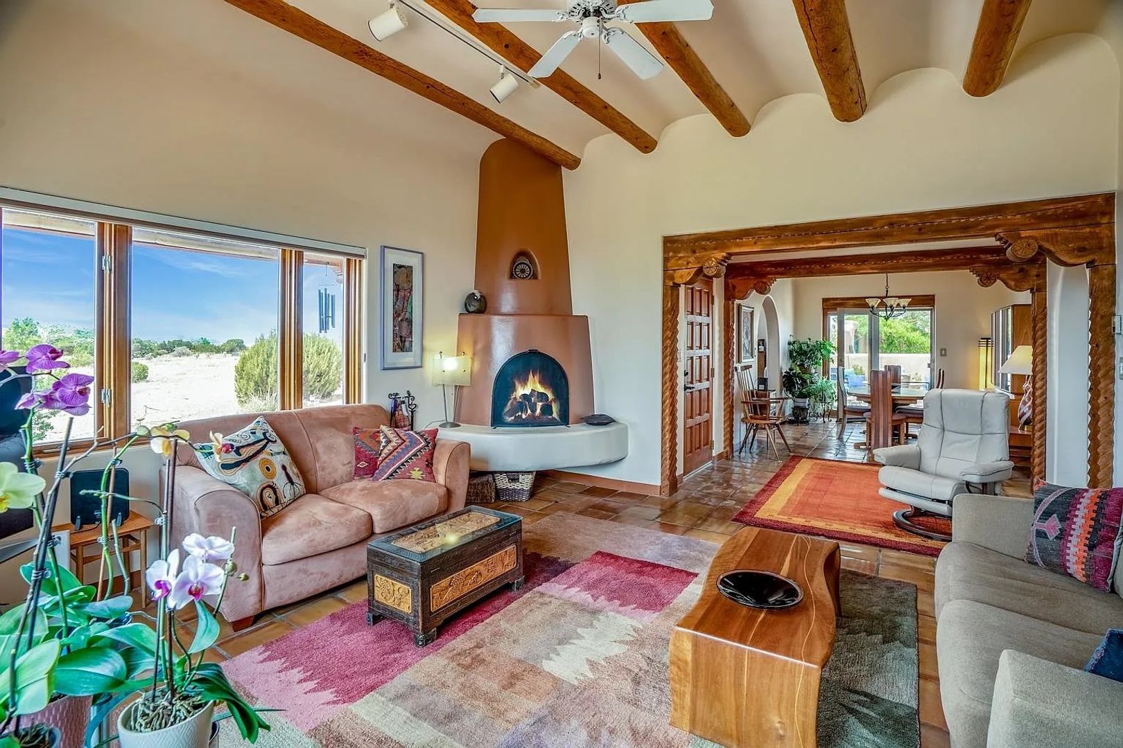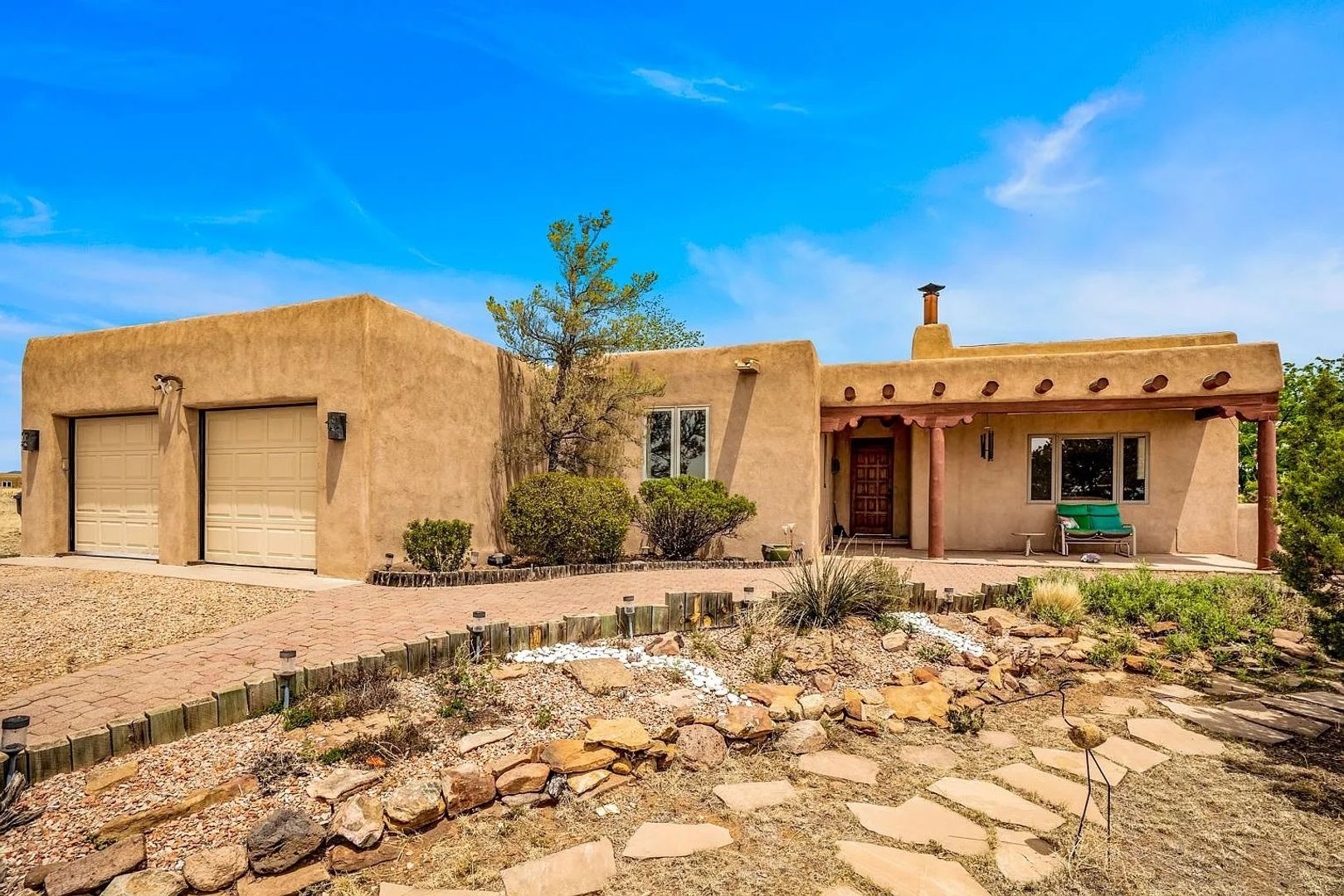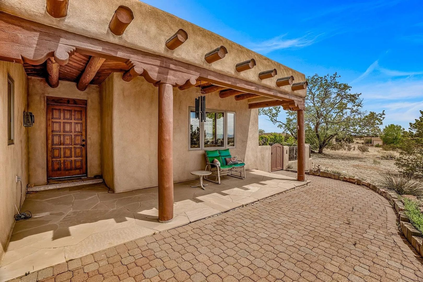 Escape to serene living in this charming, unfurnished 3-bedroom, 2-bath home in the picturesque community of El Dorado. This inviting residence features beautiful tile floors in the kitchen and living room, complemented by cozy carpet in the bedrooms. Experience the warmth of traditional wood viga ceilings and a fireplace in the spacious living room, perfect for chilly evenings.