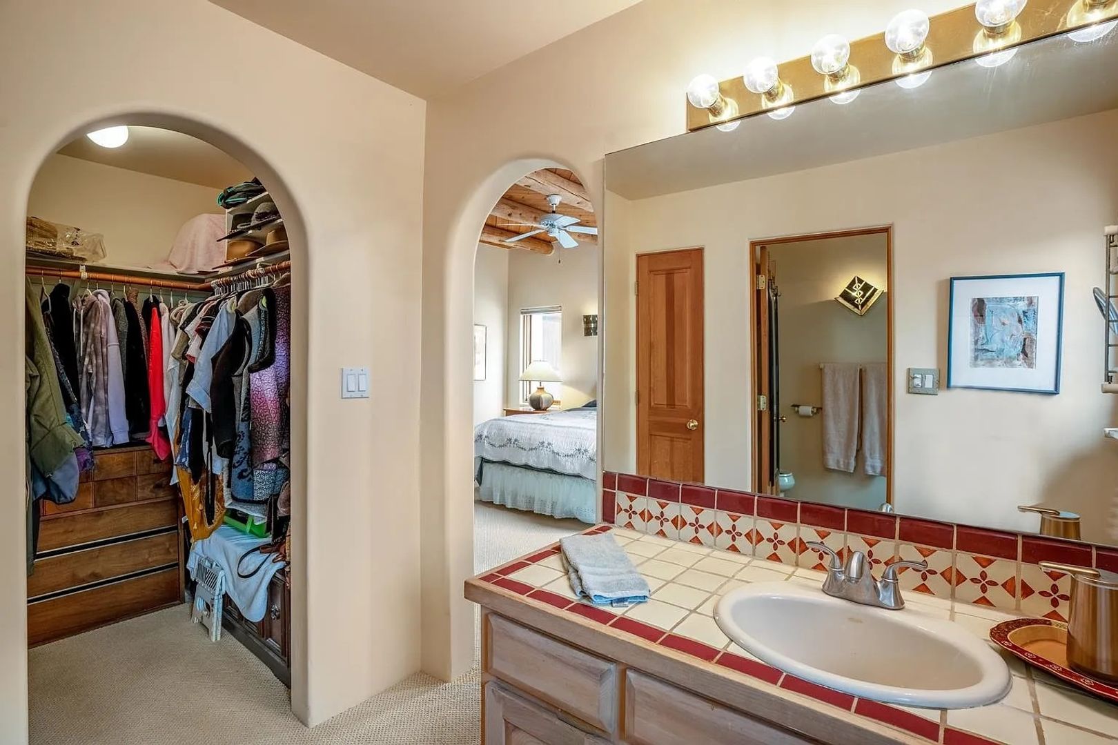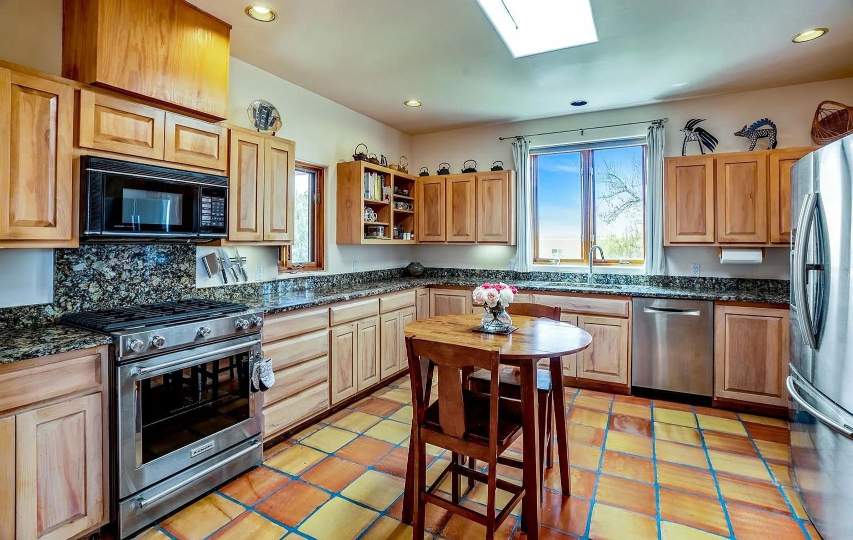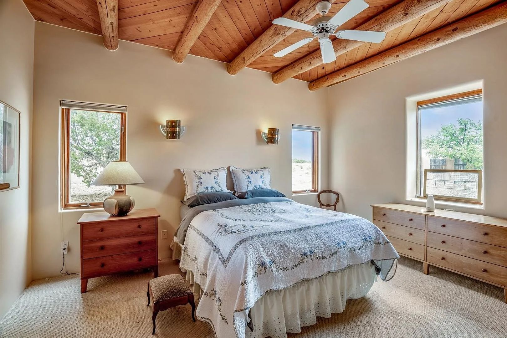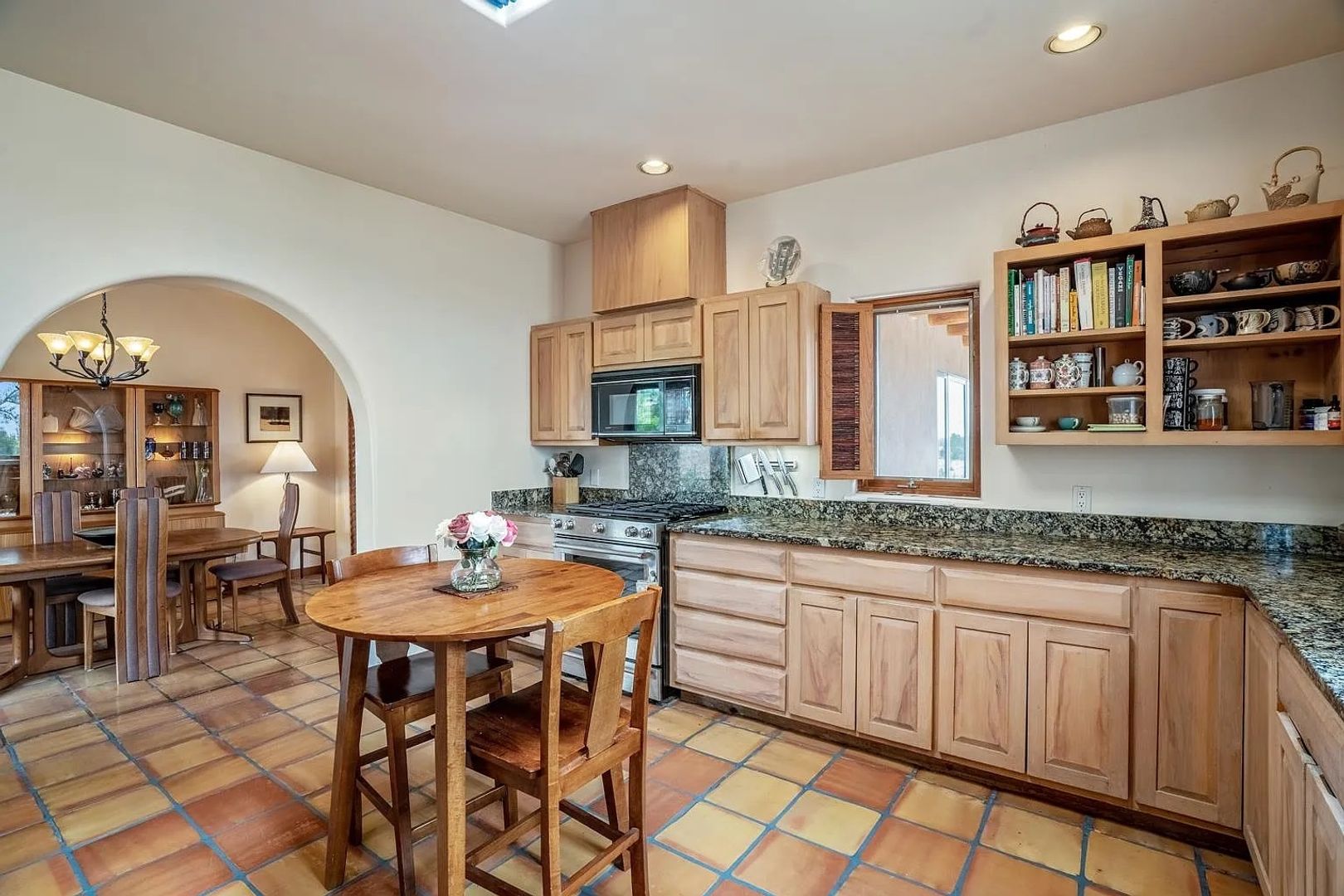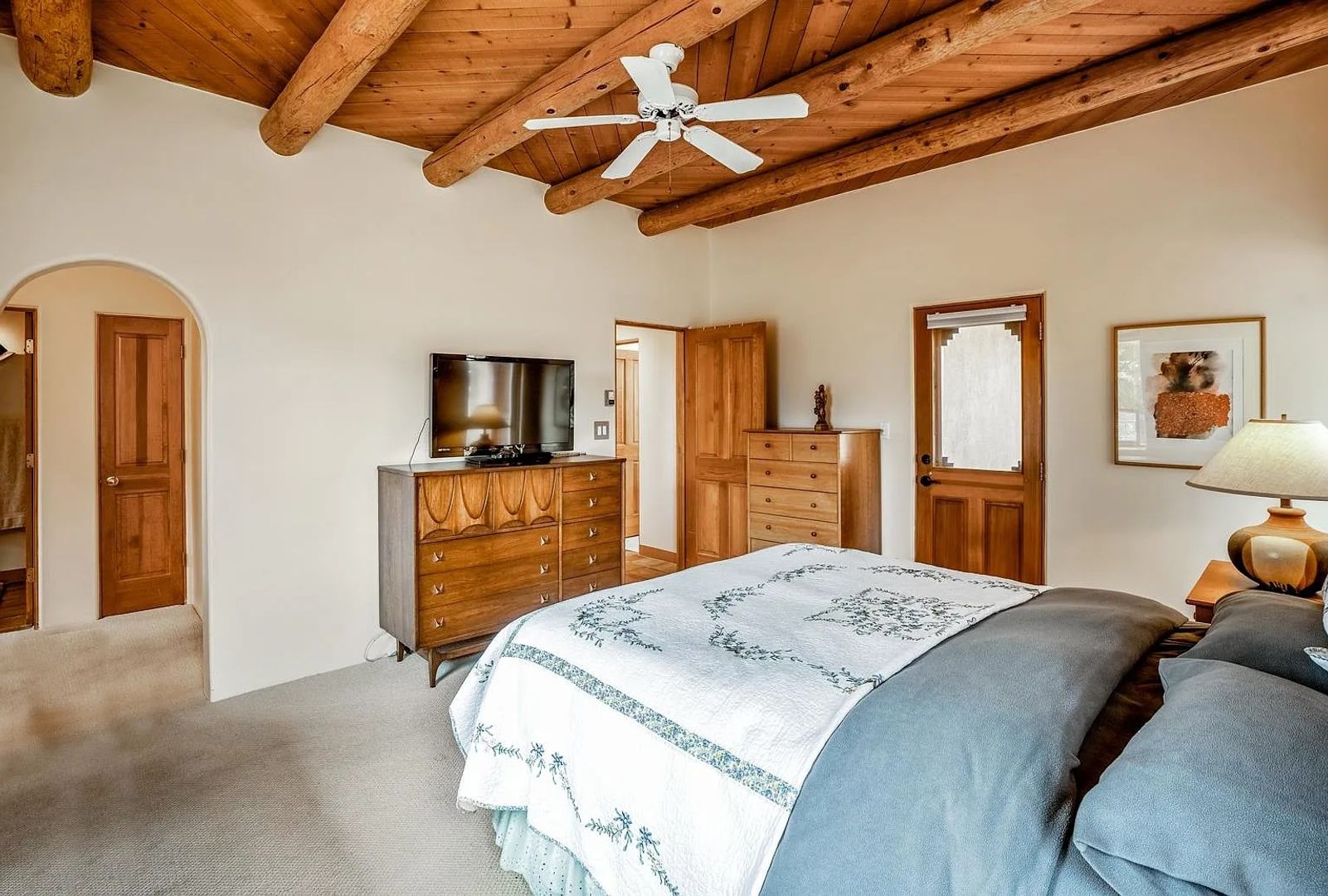 Escape to serene living in this charming, unfurnished 3-bedroom, 2-bath home in the picturesque community of El Dorado. This inviting residence features beautiful tile floors in the kitchen and living room, complemented by cozy carpet in the bedrooms. Experience the warmth of traditional wood viga ceilings and a fireplace in the spacious living room, perfect for chilly evenings.